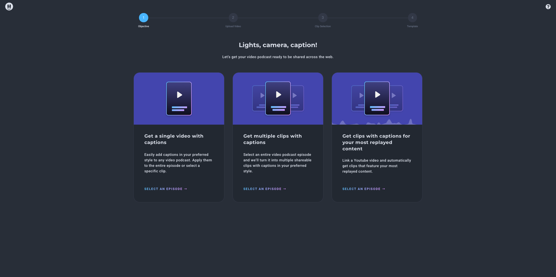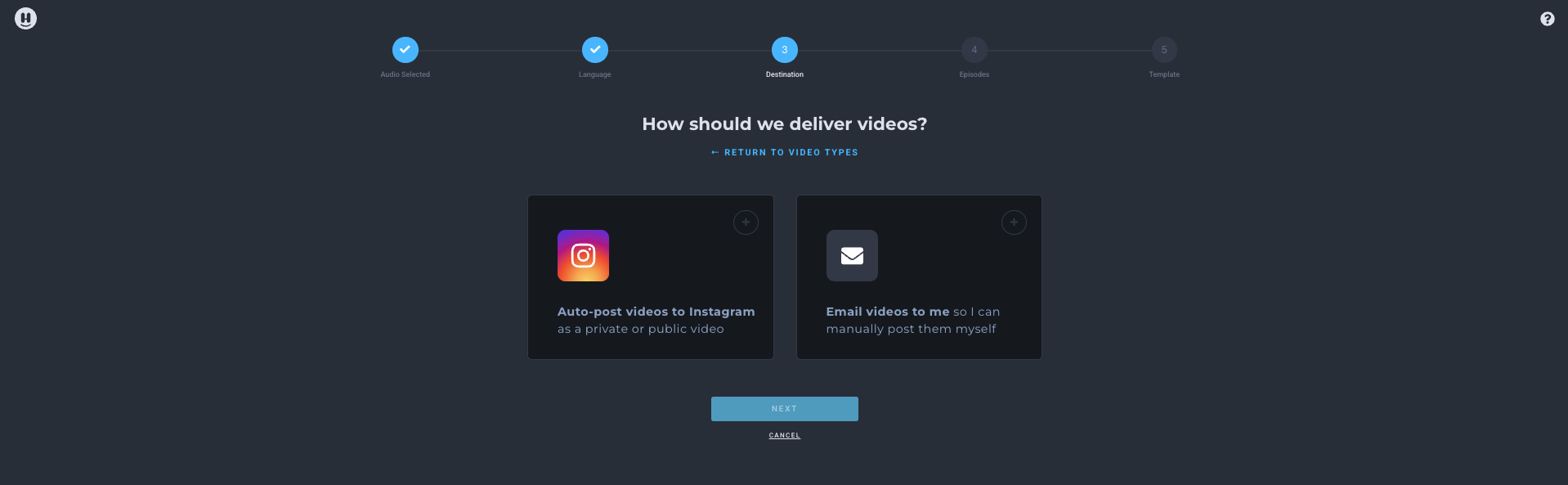 Our orange button opens Headliner's video flow! This option is perfect for creators who work with video projects. Other things it does?