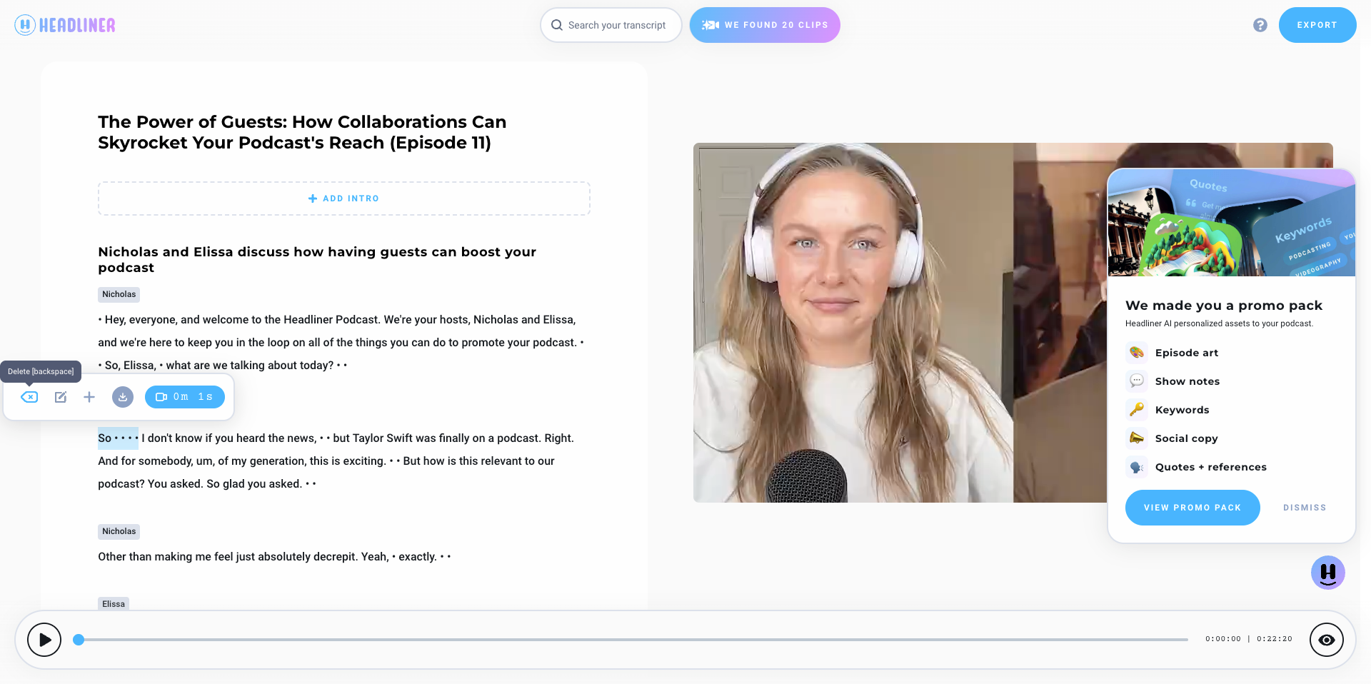 Headliner has two different audiogram flow. Both are perfect if you are an audio-first podcaster! Audiograms let you convert audio to video so you can easily share podcast clips or episodes across social media and YouTube.